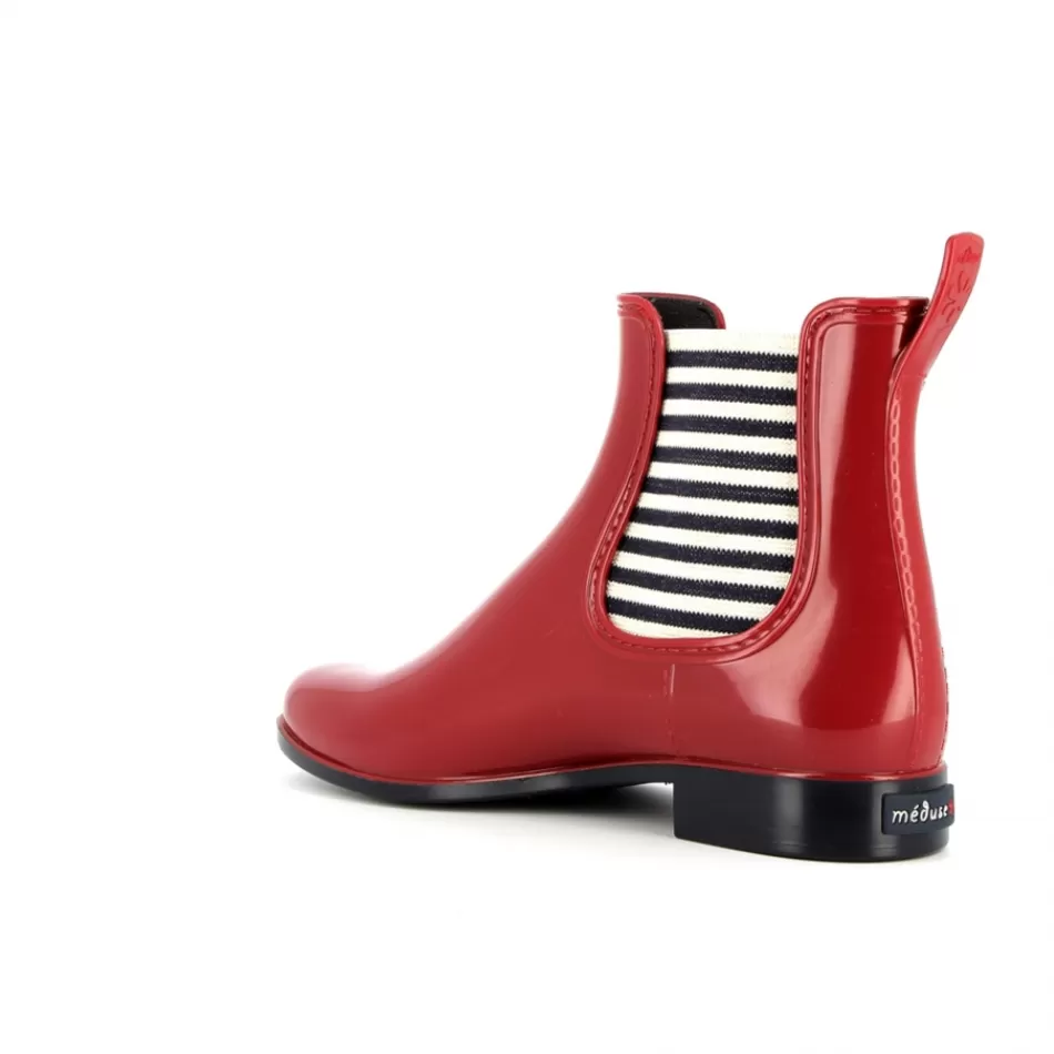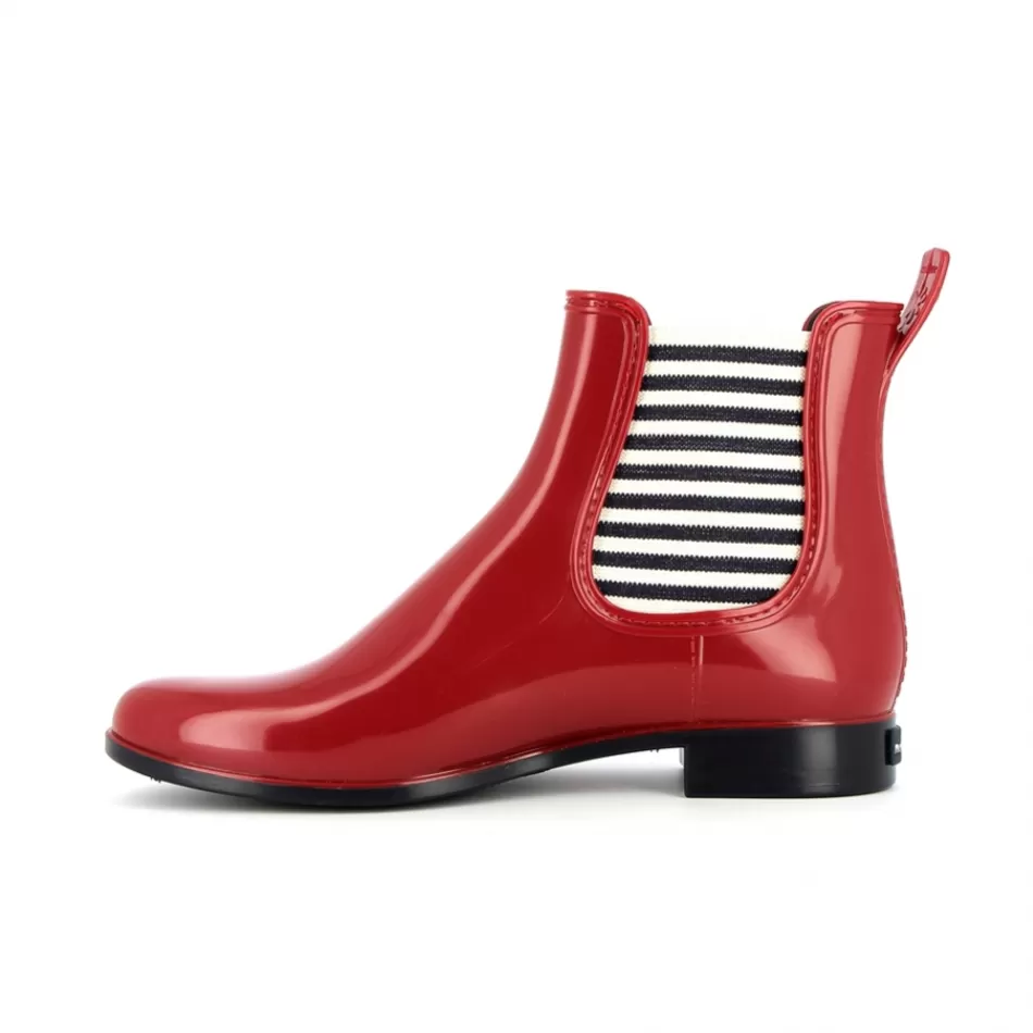 Portez ces chaussures avec fierté, exprimant la passion de la mode française et l’esprit marin. Que le rouge vibrant évoque la passion ou rappelle le drapeau maritime, ces bottines faciles à enfiler incarnent l’élégance intemporelle avec une touche contemporaine. Brillez sous la pluie avec cette création qui célèbre la mode française sous toutes ses facettes.