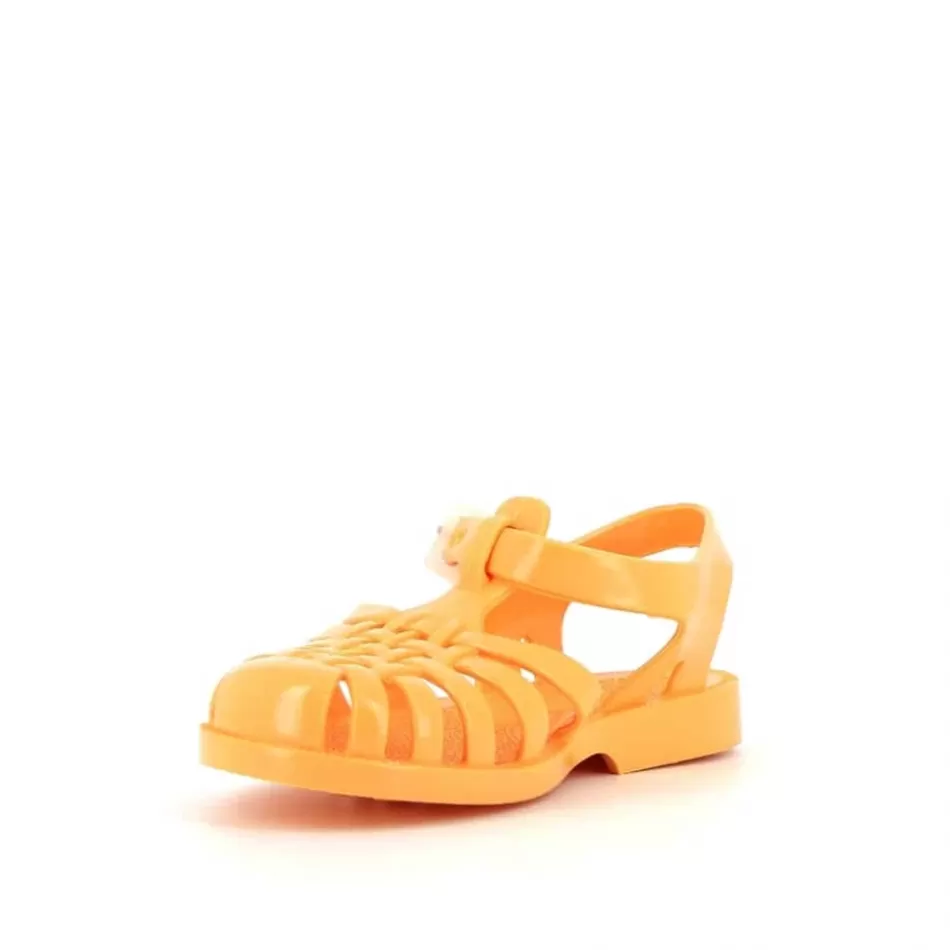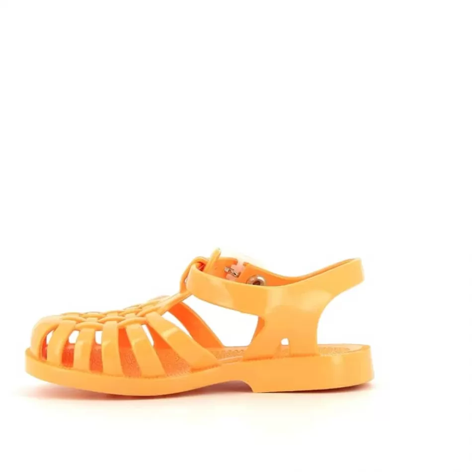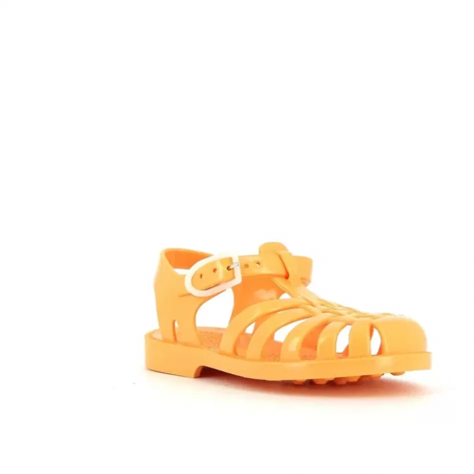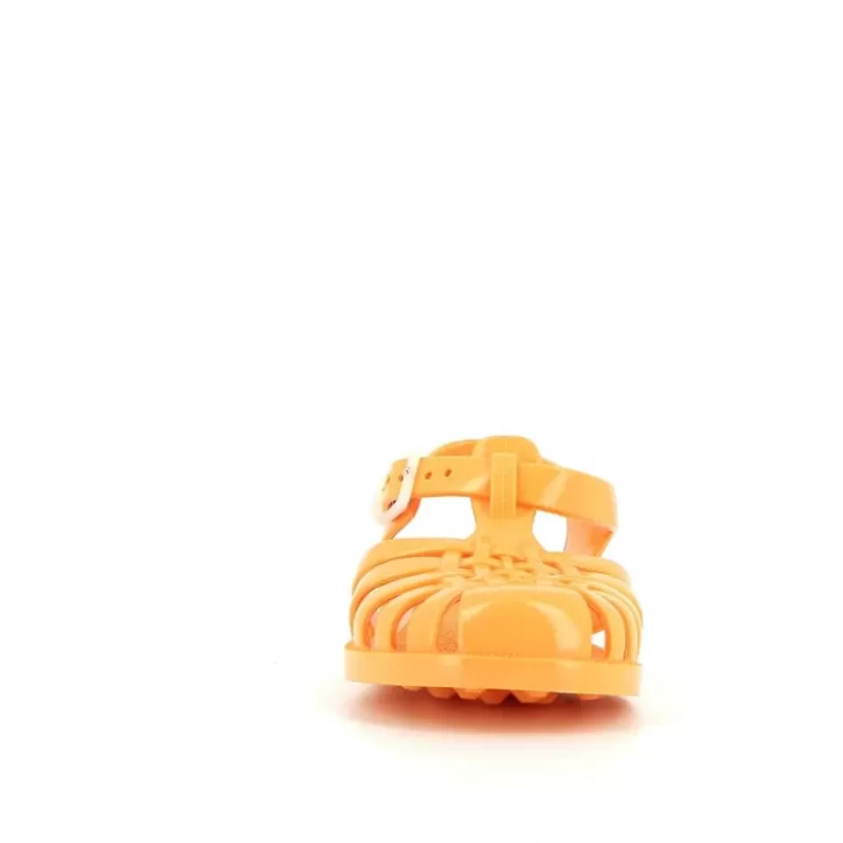 Disponible de la taille 18 au 38 et en Melon, la sandale Sun pour les enfants est un modèle parfait pour la plage. Ces sandales possèdent un bout arrondi, des brides tressées et une semelle à picots.